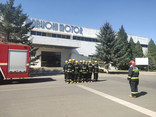 老虎屯消防中隊到萬寶至萬達工作現場做模擬實戰演習